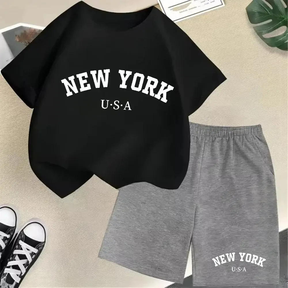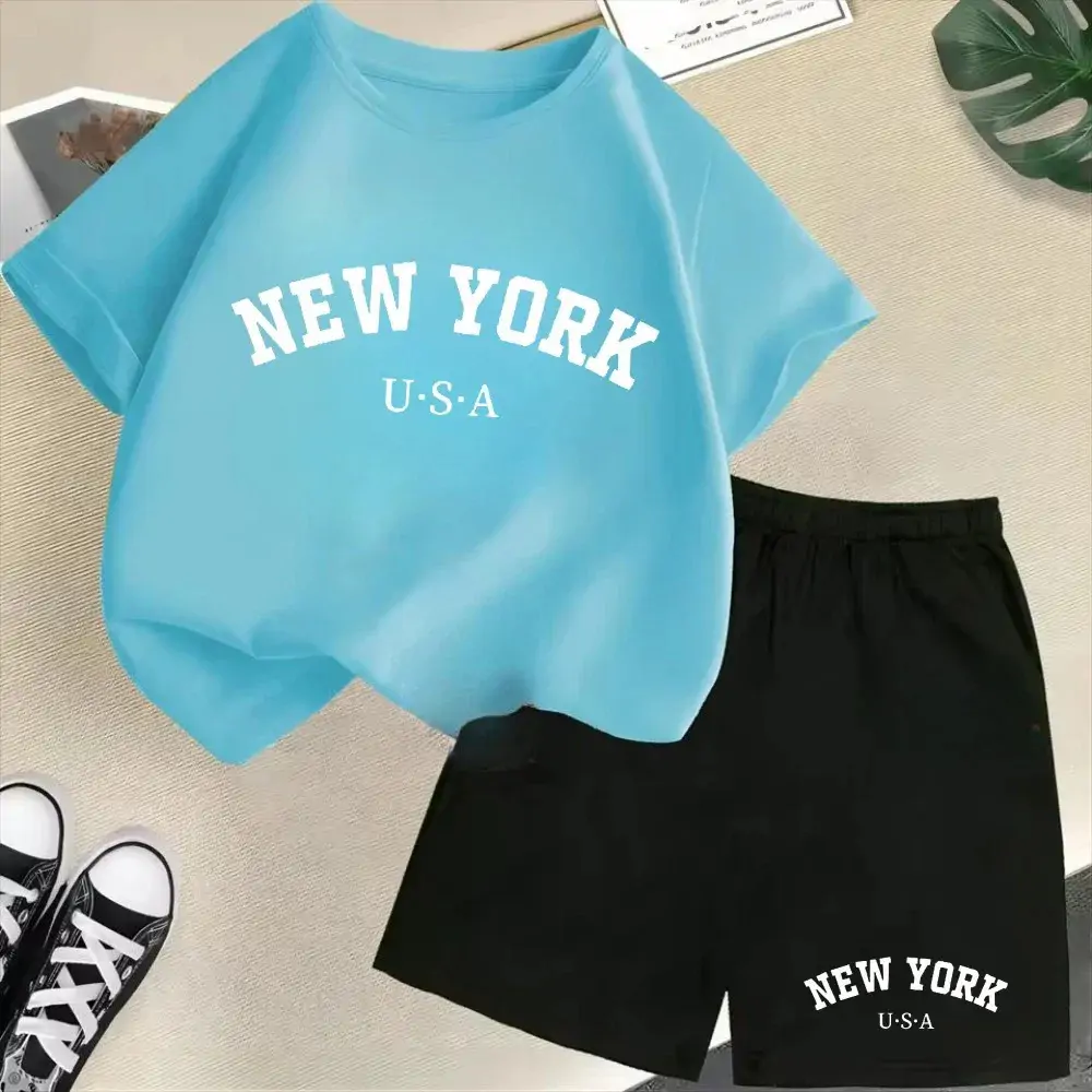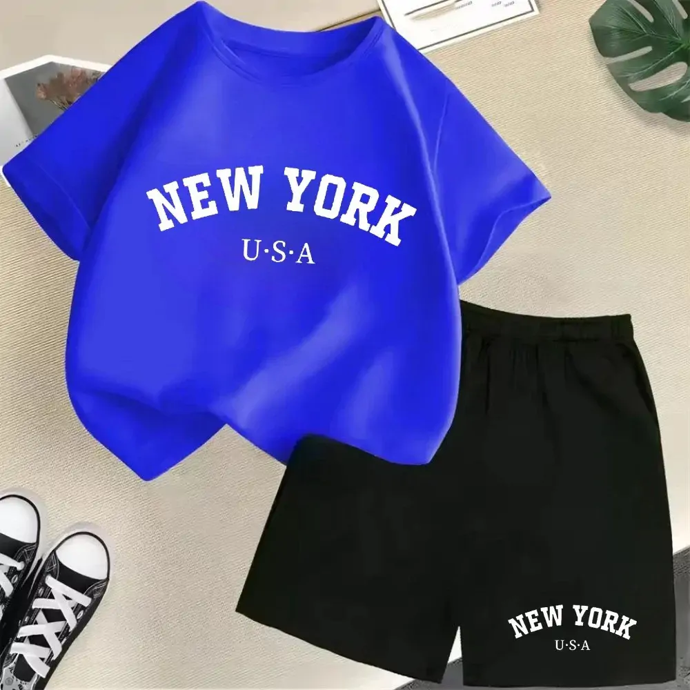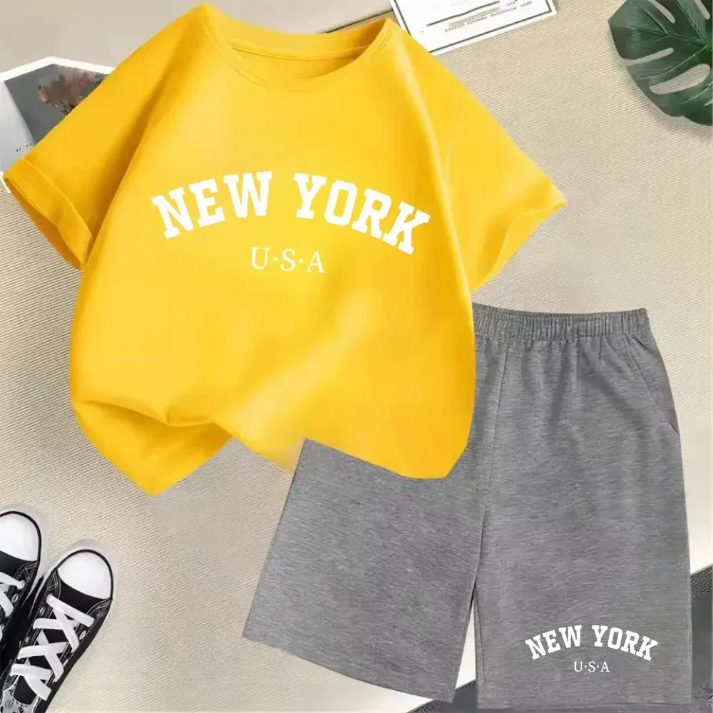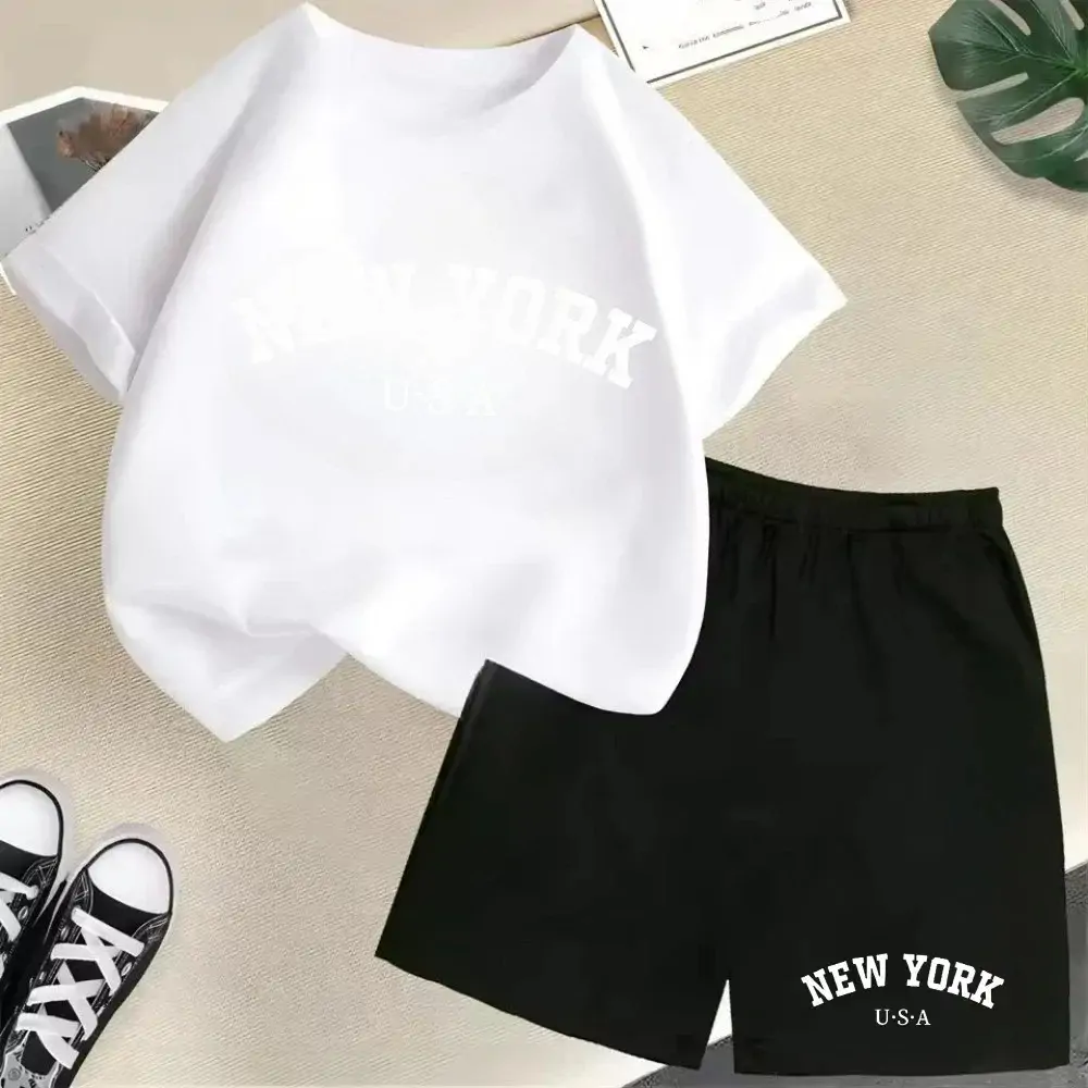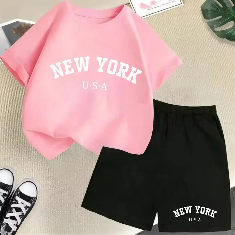 طقم أطفال صيفي تيشيرت وبنطلون 2 قطعة